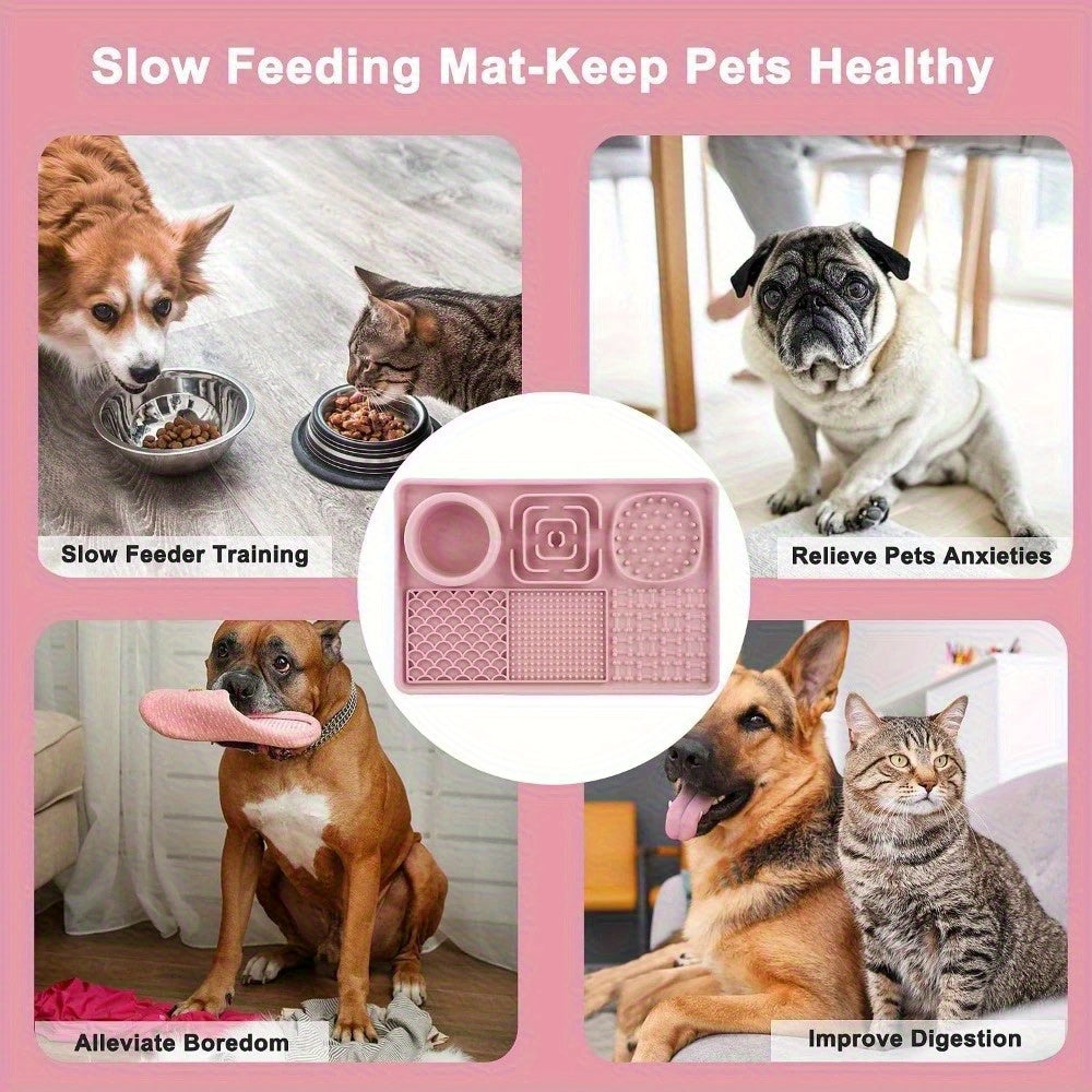 - Salud Dental Mejorada: La superficie texturizada del tapete ayuda a limpiar la lengua de tu perro, promueve una mejor higiene bucal y refresca su aliento. Es un paso simple y divertido hacia una boca más sana.