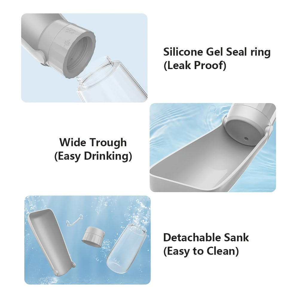 - Salud y Bienestar: Evita que tu perro beba de fuentes de agua dudosas en la calle. Con esta botella, tienes la seguridad de que el agua es segura para su consumo, contribuyendo a su salud digestiva y a su bienestar general.
